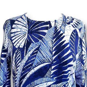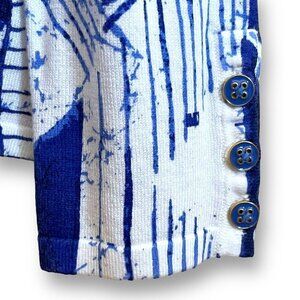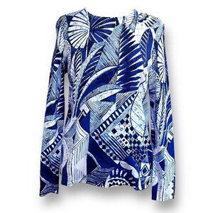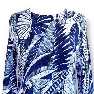 J McLaughlin Womens Lenny Sweater Sz M Blue White Royal Palm Print Coastal Knit