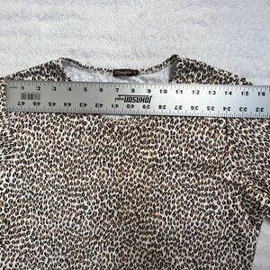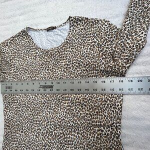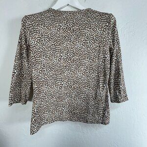 J. McLaughlin Womens Leopard Print 3/4 Sleeve Top Medium Brown Stretch Casual