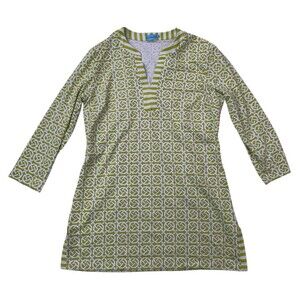 J. McLaughlin Womens Medium Geometrical Print 3/4 Sleeve Stretch Pullover Blouse