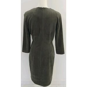 The J. McLaughlin Women's Neville Olive Suede Wrap Dress in size Medium is a piece perfect for various occasions . This knee-length dress features a flattering V-neckline, long sleeves, and a zip closure for easy wear. This beautiful dress is new with tags. Refer to photos for measurements.
