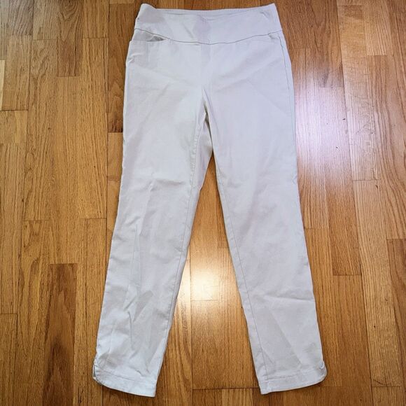 J. McLaughlin Women's Pull On Ankle Pants Split Sides Beige Sz 4 Preppy Classic