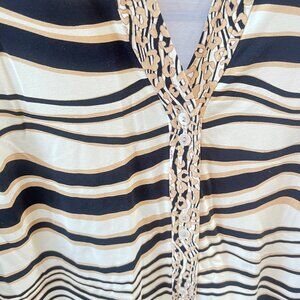 J. McLaughlin Womens Striped Dress With Embellished Neckline & 3/4 Sleeves - Siz