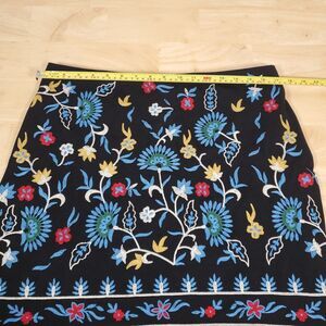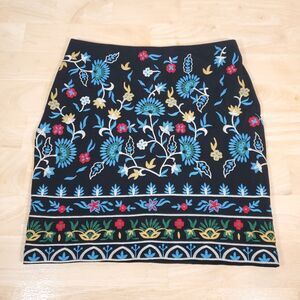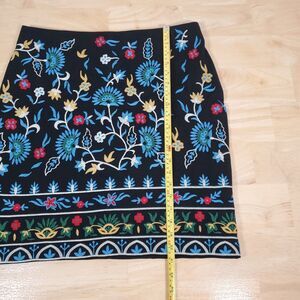 J. McLaughlin Women's Sz 12 Black Embroidered Bainbridge Pencil Skirt Lined Folk