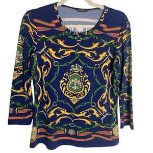 J McLaughlin Womens Top Medium Catalina Cloth Equestrian Horse Bit Long Sleeve