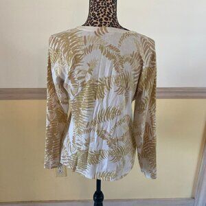 J. McLaughlin Women's White Gold Leaf Pattern Cardigan Size M L8
