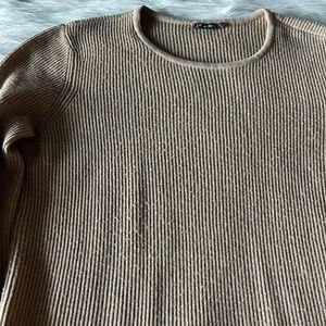 J. McLaughlin Wool Ribbed Blouson Sleeve Sweater in Tan