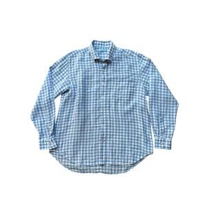 J McLaughlin XL Light Blue & White Linen Gingham Check Long Sleeve Button Down