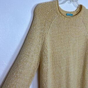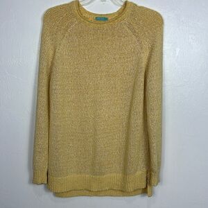 J. McLaughlin Yellow Cotton Crew Neck Textured Pullover Sweater Size L