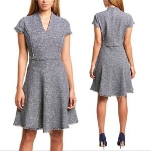 J. McLaughlin Zinnia Tweed Fit & Flare Dress Women's Size 4 Navy White Tweed
