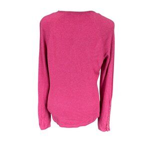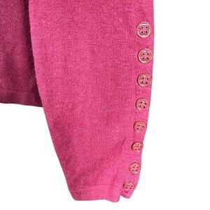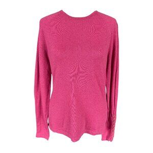 Women's J. McLaughlin berry colored long sleeve pullover sweater, size small. This is soft, stretchy, has a round neckline, and eight accent buttons on each sleeve. Hand or machine wash. Excellent condition and from a smoke free pet free home. Quick shipper!