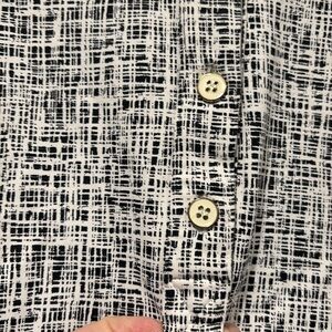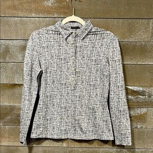 J. McLaughlin black and White 1/2 buttoned down blouse size XS