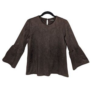 J McLaughlin faux suede Bell sleeves Keaton Mocha Brown Top size Small