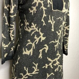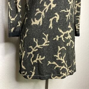 J McLaughlin gray tan metallic knit coral print sweater size Medium