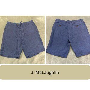 J. McLaughlin Blue Linen Flat Front Golf Chino Shorts Size 36