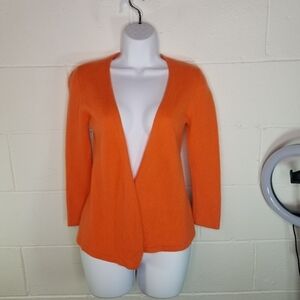 J. McLaughlin orange coral cashmere open front cardigan sweater