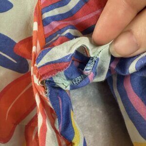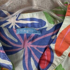 J McLaughlin bright print top size 12. 52% silk, 48% cotton. NOTE: has hole under one arm that needs stitching up. Price refrlects damage.