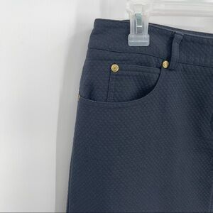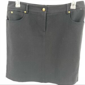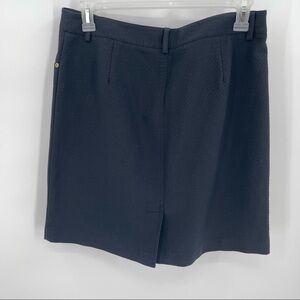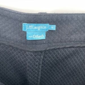 J. McLaughlin Women's size 14 Black Textured Pencil Skirt Pockets Front Button /zip. Cotton polyester. Crisscross texture. Waist 36. Length 21. Measurements are approximate. Very good preowned condition.