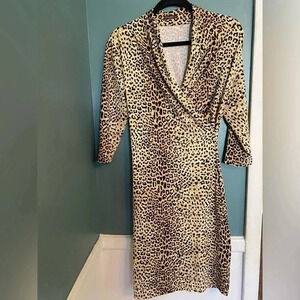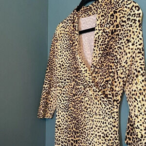 J. McLaughlin small women’s faux wrap dress- cheetah print -3/4 sleeves