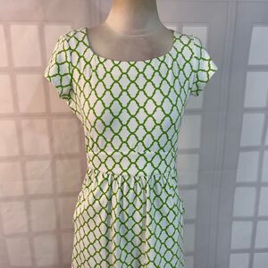 J McLaughlin white green geometric print cap sleeve sundress size small