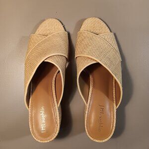 J. McLaughlin women's 'Tribeca' Raffia Heeled Slide Sandal sz 8 Medium. Pre-owned.