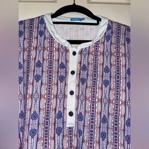 J. McLaughlin women’s quarter button front colorful boho printed top M spring