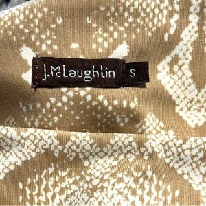 J. McLaughlin, Sage Dress, BodyCon, Single Side-Ruched, - Signature Catalina Cloth® (JMC Fabric), - 3/4 sleeves. - Boatneck, Instantly Slimming,Wow!!!! …beautifully tailored J.McLaughlin gold textured sheath featuring their signature slimming stretch fabric and elegant side ruching that enhances and smooths the silhouette. The soft neutral palette and subtle abstract pattern give it an elevated, timeless feel perfect for work, brunch, holidays, or coastal evenings. #jMclaughlin #designerstyle #fashion #neutralstyle #goldchic #minimalistchic #workwear #holidaystyle #timelessdress #slimmingdress #poshfinds #instalove #classicstyle #elevatedbasics #polishedlook The 3/4 sleeves and knee-length cut keep the look polished, refined, and effortlessly flattering. Lightweight, smoothing, and comfortable — this is one of those rare dresses that looks high-end without trying. Condition: EUC — beautifully maintained Size: Small Fabric: 91% Nylon / 9% Spandex Stretch: Yes, smoothing + forgiving Color: Gold + cream neutral abstract textur sale, #designerresale, #prelovedluxury, #resell, #shopresale, #gentlyused, #preowned, and #usedbutloved.