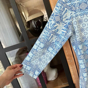 J. Mclaughlin Blouse catalina cloth Wavesong Tee Scuba Top Medallion Lane tile