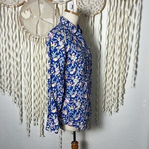 J. Mclaughlin Blue Floral Print Long Sleeve Button Down Blouse size Small
