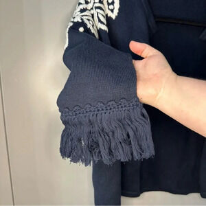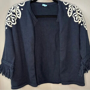 J. Mclaughlin Cardigan Navy Blue Knit Embroidered Cardigan Size Small