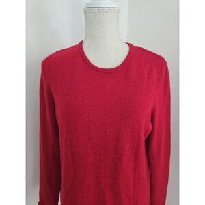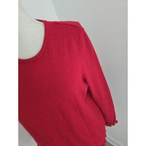 J Mclaughlin Cashmere Red Ruffle Pullover Crew Neck Knit Sweater Womens Size M