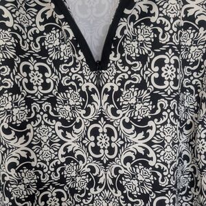 The J McLaughlin Catalina Cloth Black White 1/4 Zip Dress in women's size small is a stylish and versatile piece suitable for various occasions. Made from a stretchy blend of nylon and spandex, this knee-length dress features a flattering V-neckline, 3/4 sleeves, and a unique paisley pattern in black and white. The quarter-zip closure adds a touch of detail, while the A-line silhouette provides a classic yet trendy look perfect for summer, fall, or spring. Easy to care for with a hand wash only requirement, this dress offers comfort and style for everyday wear or business settings.