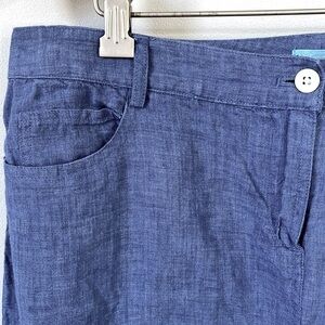 Lovely J. Mclaughlin Denim Blue Linen Skirt With Frayed Hem.