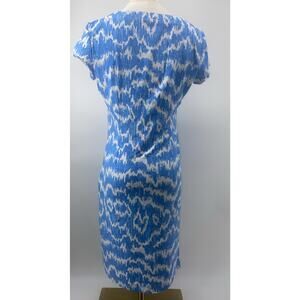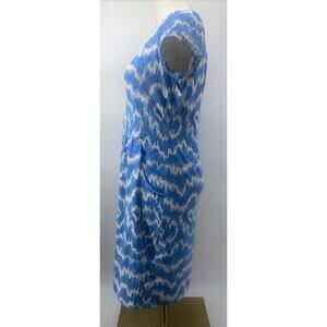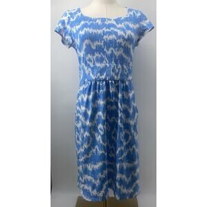 J Mclaughlin Dress Size Small Blue White Print Square Neck Pockets