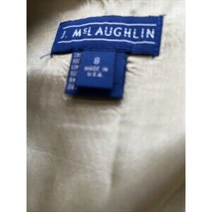 The J McLaughlin Gold Multi Striped Skirt in size 8 is a stylish and versatile piece for the fashion-forward woman. Made from cotton twill fabric, this knee-length skirt features a flattering straight & pencil style with a mid-rise waist. The skirt is lined for added comfort and has a zip closure, making it suitable for various occasions including travel, parties, casual outings, and business meetings. The gold color and striped pattern add a touch of sophistication, making it a chic addition to any wardrobe for the summer, fall, or spring seasons.