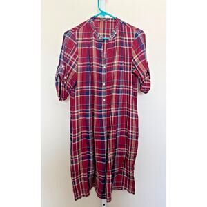 J. Mclaughlin Linen Tunic Dress Size Small Red Plaid Button Up Pintuck detail