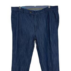 J Mclaughlin Men Oxford Linen Dress Pants size 36X34 Blue Chambray