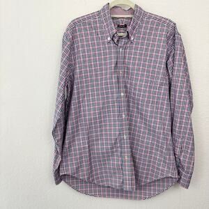 J. Mclaughlin Mens Button Down Shirt Size L Long Sleeve Gingham 100% Cotton Red