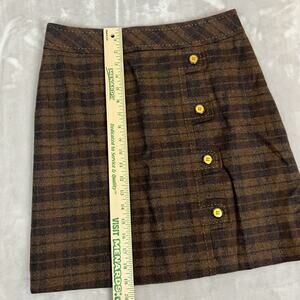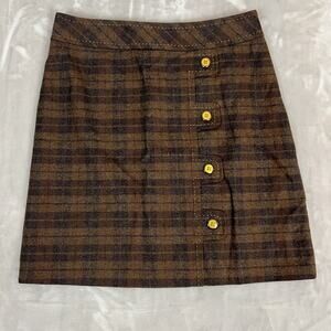 J Mclaughlin Mini Skirt Womens 4 Brown Plaid Wool Dark Academia Preppy School