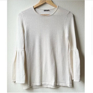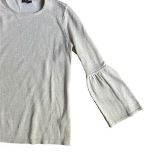 J. Mclaughlin Metallic Gold Sparkle Bell Sleeve Sweater in Cream Color Sz XS