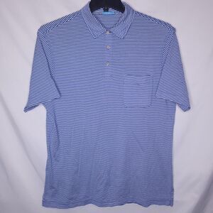 J Mclaughlin Polo Shirt Mens Large Striped Blue, White Pima Cotton Golf
