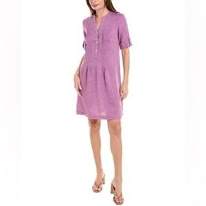 J Mclaughlin Riviera Linen Dress size XS Pintuck Pop Over Roll Tab Sleeve Pink