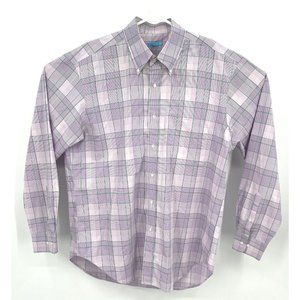 J Mclaughlin Shirt XL Purple Green Check Button-up Long Sleeve 100% Cotton