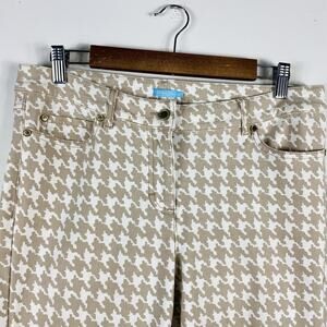 J. Mclaughlin Size 10 Houndstooth Print Lexi Skinny Jeans Tan White