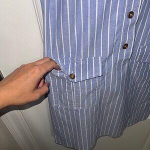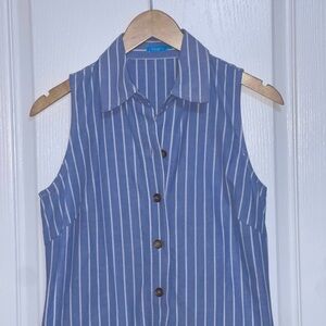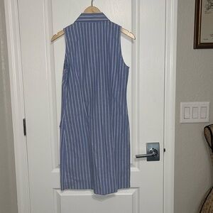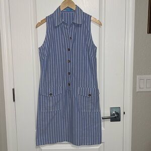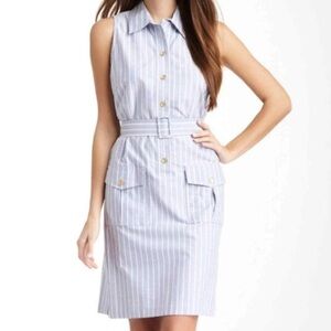 J. Mclaughlin Sleeveless The "Sun City" Khaki Dress Light Blue Striped Collared