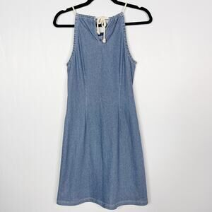J Mclaughlin Small Blue Maria Stretch Knit Denim Rope Halter Shift Dress Cotton