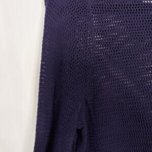 J Mclaughlin Small S Navy Blue Fringe Tassel Open Knit Sweater Long Sleeve VNeck