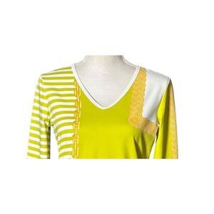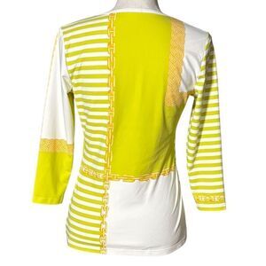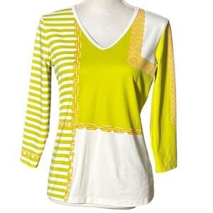 J Mclaughlin Top Size Small Catalina Cloth Green Chain Stripe 3/4 Sleeve Preppy