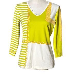 J Mclaughlin Top Size Small Catalina Cloth Green Chain Stripe 3/4 Sleeve Preppy