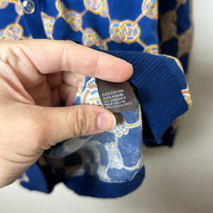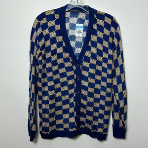 J Mclaughlin Womens Kristyn Cardigan XS Denim Gold Heraldic Knot Chain Sweater