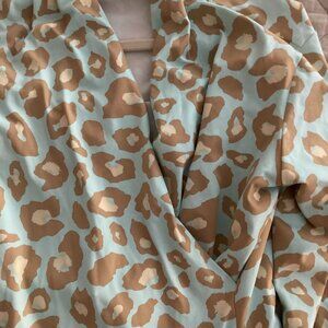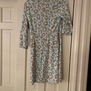 EUC J Mclauglin faux wrap dress. Knee length, three qurter sleeves. No signs of wear, no rips or stains. Baby blue with light leopard print.